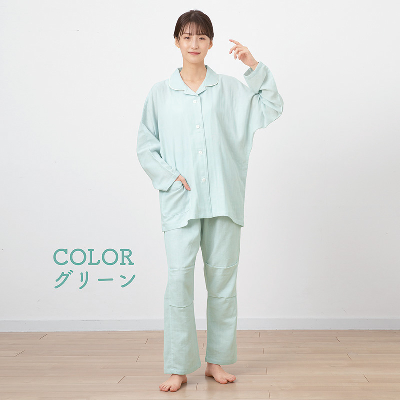 和晒し 2重ガーゼ レディースパジャマ 綿100% 日本製 Mサイズ(ピンク、グリーン)