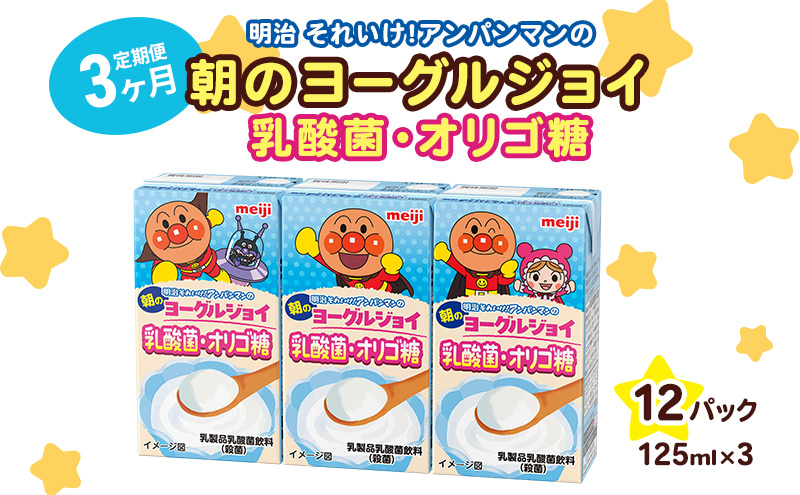 【3か月定期便】明治それいけ!アンパンマンの朝のヨーグルジョイ 乳酸菌・オリゴ糖 125ml×3 12パック