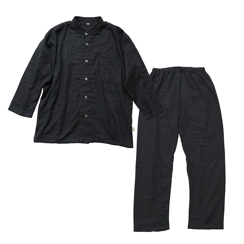 moun 3重ガーゼ メンズパジャマ 綿100% 日本製 Lサイズ(ネイビー、ブラック)