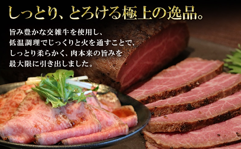 旨み豊かな交雑牛を使用し、低温調理でじっくりと火を通すことで、しっとり柔らかく、肉本来の旨みを最大限に引き出しました。