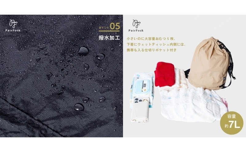 ・本体生地は、撥水加工されており、雨にぬれても大丈夫。