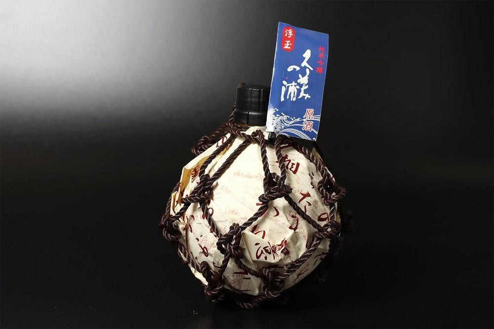 昔、当地久美浜の海にもよく浮いていた浮玉を模した瓶に純米吟醸の原酒を詰めました。包装紙には江戸末期頃に久美浜の名所を詠んだ「久美八景」が書かれています。中身の酒は地元久美浜産の酒米、五百万石と日本晴を使用してじっくり仕込み、全く加水しないまま詰めています。巾のある 重厚な味わいです。