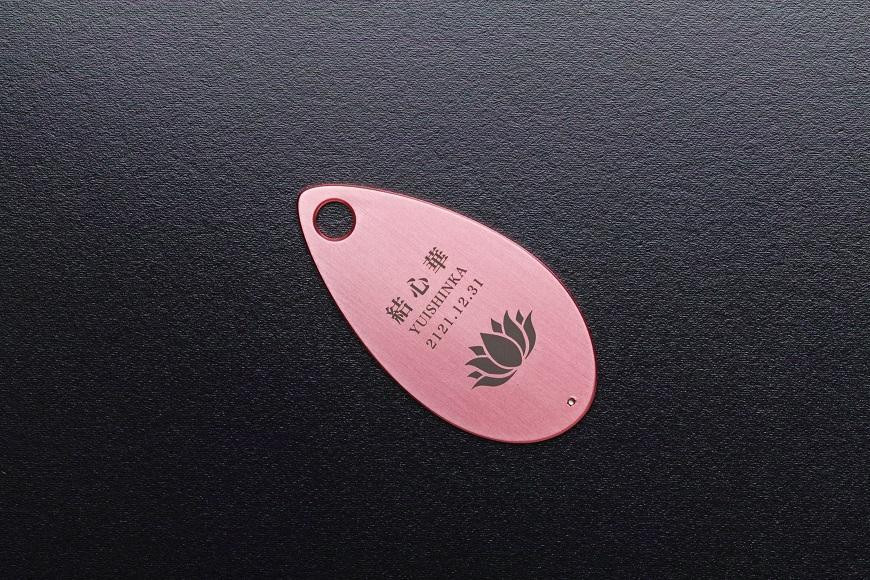 チョイスPayポイントと交換できる品 遺灰入れカード型ケース 結心華 しずくタイプ アルミ製 色:ピンク(カラーアルマイト) HR00023
