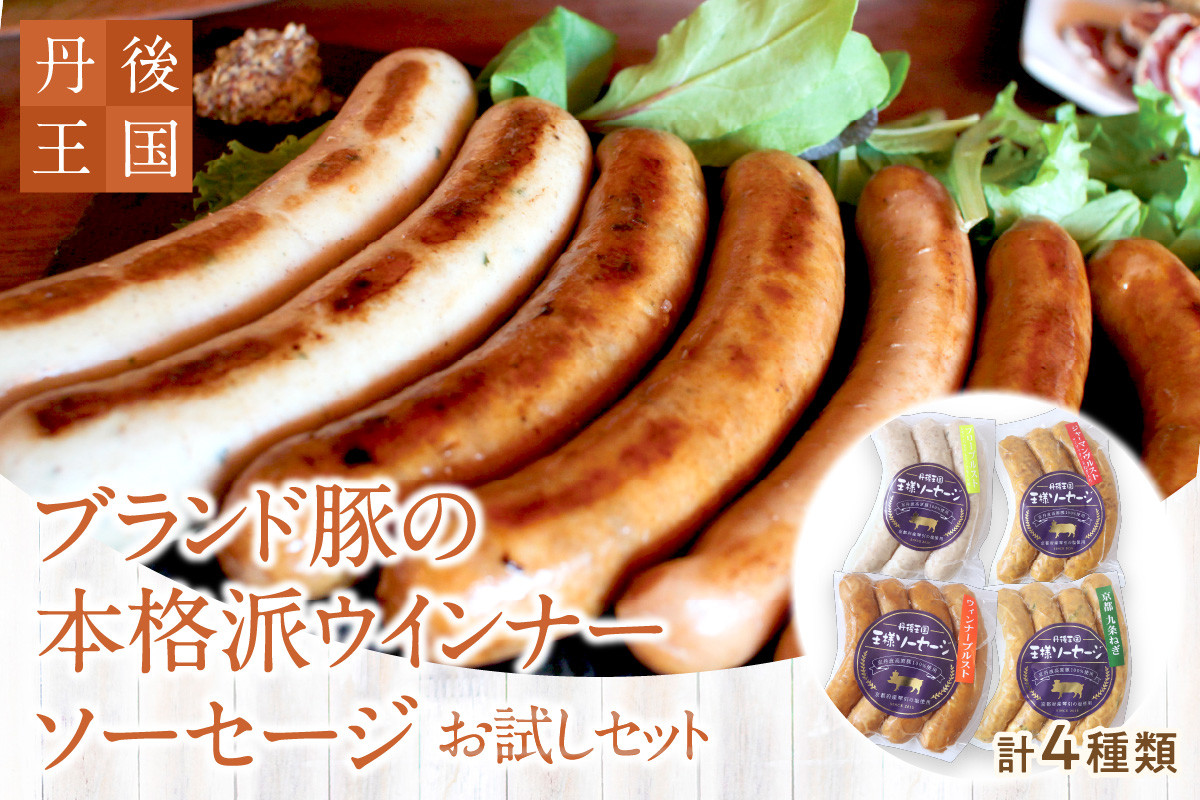 京丹後市の「丹後王国」にある工場でこだわり製法を用いて作った、自家製ソーセージをたくさんの皆様にお手軽にお試しいただけるようにセットを作成しました。