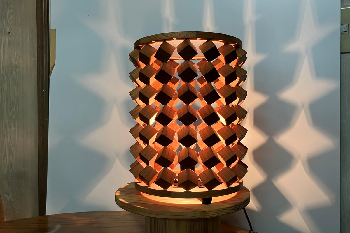 「賽の目」は京丹後市内の木工所ウッドワークスMINOの職人により、手作業で組み立てられた照明器具です。