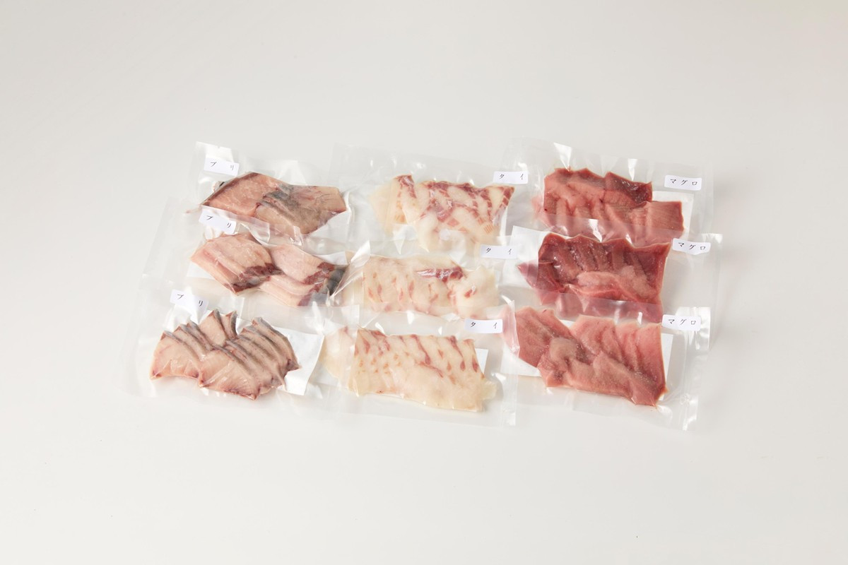 ※この返礼品を選ぶと使途は自動的に【地元で愛される魚屋の“もっと魚を好きになる”プロジェクト】となります。 日本海に面した丹後の魚屋橘商店が厳選した魚介類を、いつでも手軽にお召し上がりいただけるよう丁寧に調理しました。カット済みでお届けいたしますので、そのままお刺身として楽しむのはもちろん、お寿司、海鮮丼、海苔巻きなど様々な方法でお召し上がりください。 お料理に使いやすいよう3種(1種類につき、10切れ×3パック)計9パックにしてお届けします。 容量が多いので、家族や友人とのパーティーなどでもお使いいただけます。 解凍は、お食べいただく1時間程度前からパックのまま氷水で解凍していただきますと、非常においしく召し上がっていただけます。お急ぎの場合はパックのまま流水解凍してください。 【例】鯛・きじはた・ひらめ・かんぱち・あじ・ぶり・ひらまさ・かわはぎ・よこわ・まぐろ・こしながまぐろ・いさき・さわら・いか・ほたるいか・たこ・サーモン・バイ貝・甘えび等 事業者:京都府京丹後市網野町木津16 株式会社橘商店 <スケジュール> ~2026年2月末 プロジェクト募集 2026年3月〜 建設工事着工 本返礼品は、クラウドファンディング型ふるさと納税プロジェクト「#ふるさと納税3.0 ※」として取り組むものです。 ※ ふるさと納税3.0とは:プロジェクトに対するご寄附を原資として、ふるさと産品の創出等に挑戦する事業者に対して補助金を交付し、支援により創出された返礼品を寄付者様にお届けします。 【注意事項】 ・画像はイメージです。 ・水揚げ状況等により、魚種が異なり、また養殖ものをお入れすることもございますのでご了承願います。 ・ご家庭の冷凍庫での保存は長期保管に向かないため、お早めにお召し上がりください。 ・解凍後は再凍結や保存をせず、お早めにお召し上がりください。