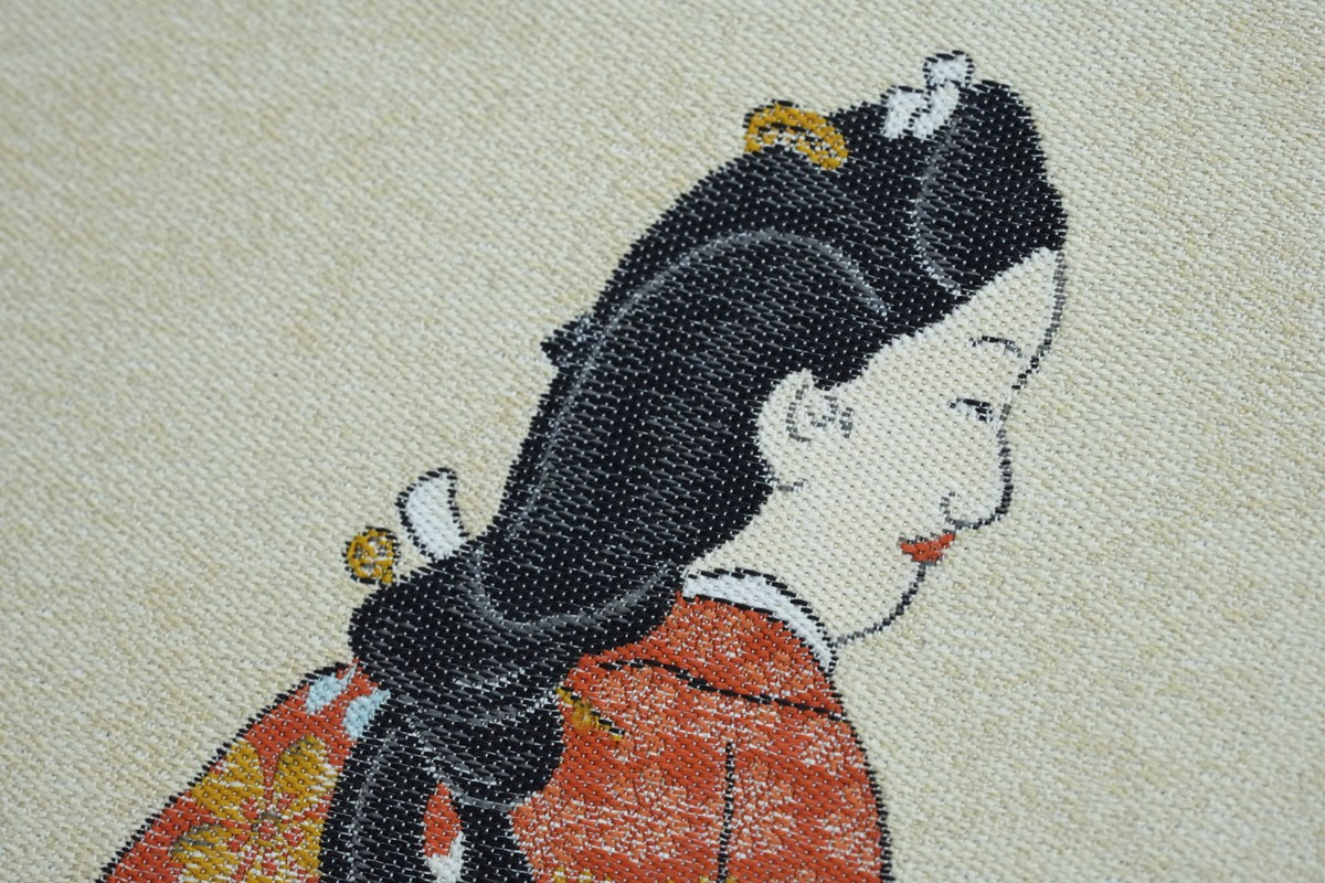 緻密に描かれた着物の文様まで精緻に織り上げた作品です。