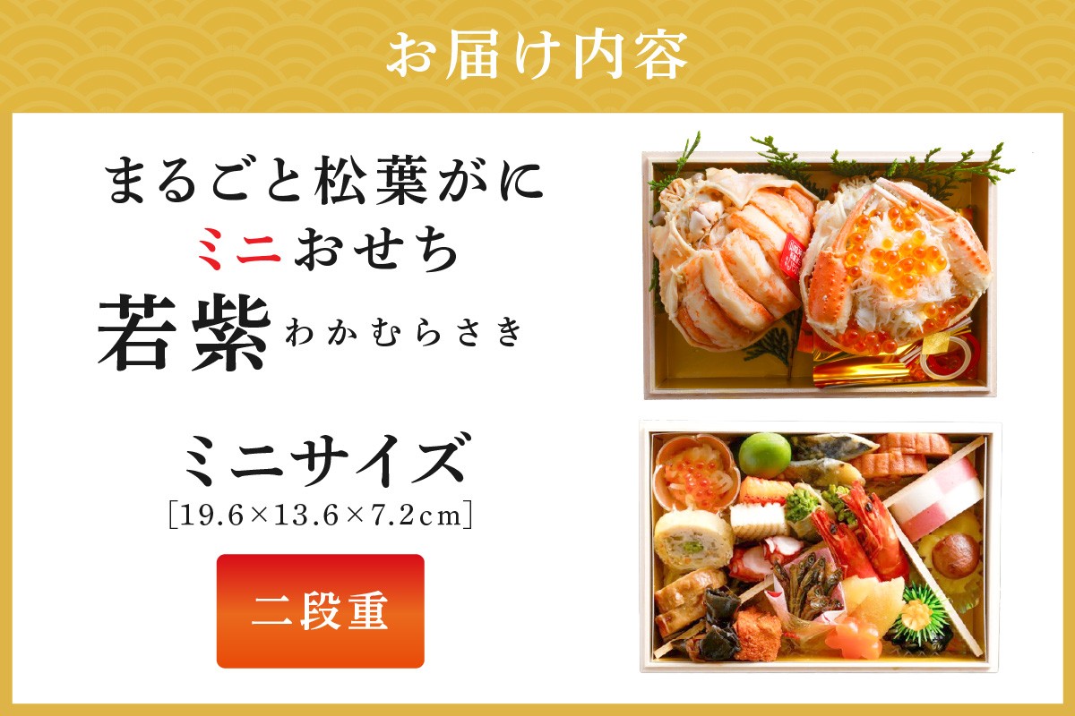 チョイスPayポイントと交換できる品 1人~2人前【数量限定】/京都・まるごと松葉がにミニおせち【若紫(わかむらさき)】「二段重」おせち料理 1人用~2人用 少量 2026年 京都 京丹後 蟹専門店 おせち おせち料理 かに カニ 松葉がに 松葉ガニ ずわいがに ズワイガニ 甲羅盛 甲羅盛り 海鮮 新年 2026 2段重 冷凍 OD00138