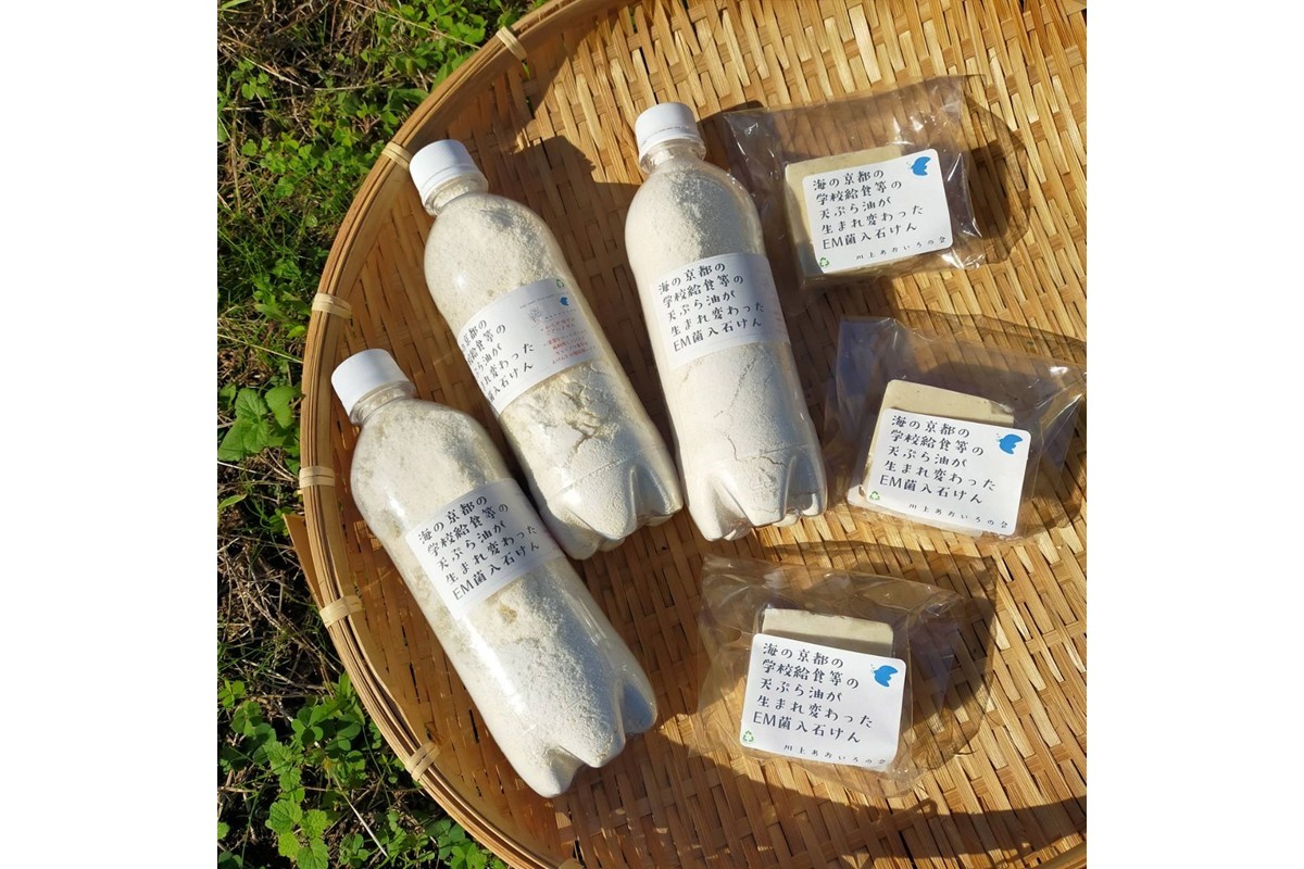 チョイスPayポイントと交換できる品 学校給食などの天ぷら油が大変身!地球に優しいエコなEM菌入石けん 海の京都 京丹後からお届け/粉石けん200g×3本+固形石鹸3個 KG00008