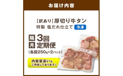 【定期便】【訳あり】贅沢!やわらか!至福の時間!!厚切り塩だれ牛タン!!500g(250g×2パック)【定期便 隔月×3回】 YK00473