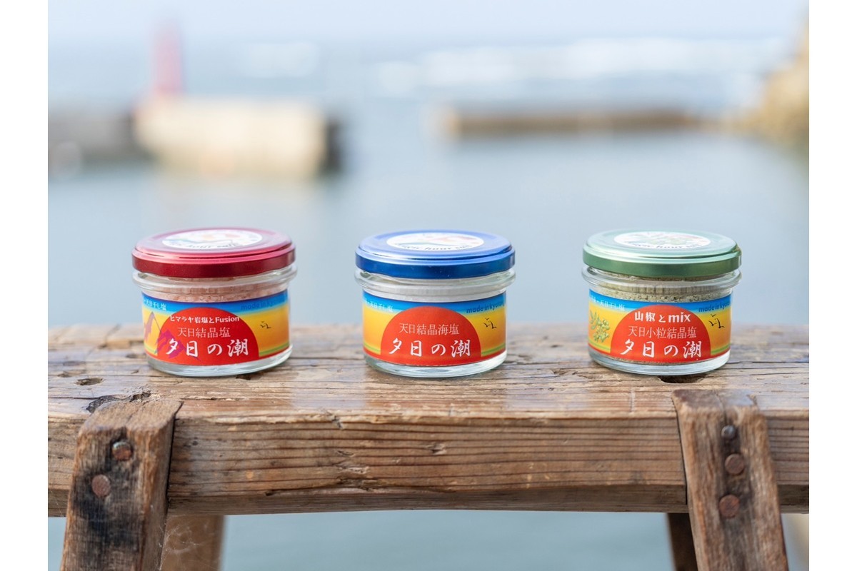 チョイスPayポイントと交換できる品 京丹後の天日干し結晶海塩 夕日の潮(網野産)セット(天然塩、天然塩と岩塩のMIX、天然塩と山椒のMIX) ON00001