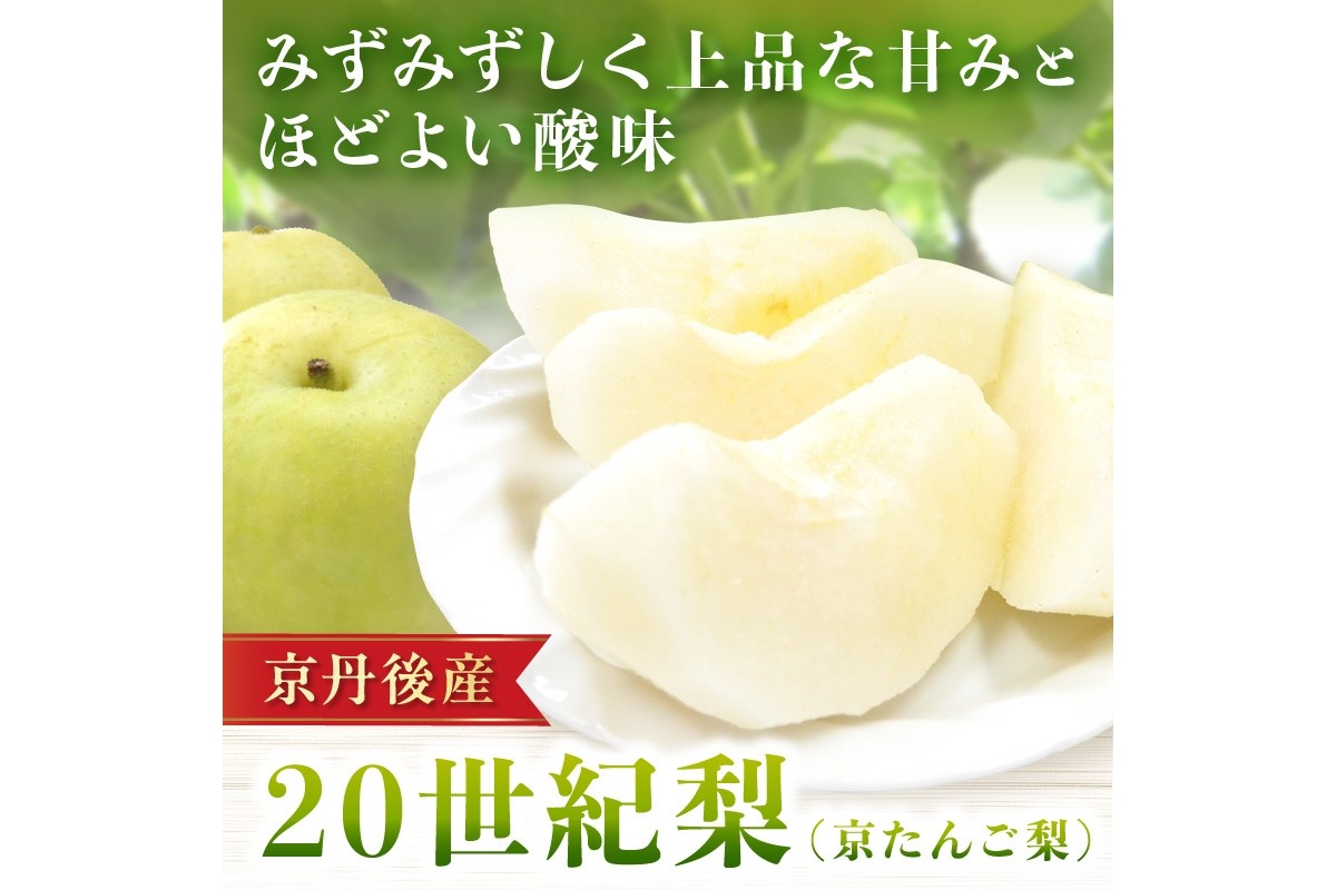 ~丹後地域特有の自然環境と、農家の細やかな栽培技術が、美味しさの秘密~ 京丹後産の廿世紀梨は、海に面した丹後半島の澄んだ空気、清らかな水、ふりそそぐ太陽のもとで大切に育てられています。 丹後のナシ栽培の歴史は古く、明治時代から。爽やかな甘みが持ち味の二十世紀です。コンポートなどのデザートにもどうぞ! ぜひこの機会に、京都・京丹後産の二十世紀梨をご賞味ください。 【特徴】 さっぱりとした甘みと上品な味わいを持つ青梨。果皮が滑らかで形が良いのが特徴です。 事業者:京都農業協同組合 【注意事項】 ★必ずお読みください★ 下記について予めご了承のうえ、お申込みをお願いします。 ・画像はイメージです。 ・すぐに食べきれない場合は冷蔵庫の野菜室または冷暗所で保存してください。 ・生ものなのでお早めにお召し上りください。 ・出荷時期は目安であり、天候や生育状況により変動する場合がございます。 ・生ものですので、生育状況、天候などにより色、形、大きさ等に個体差が生じます。 ・返礼品の発送後、寄附者様、又は受取人様のご都合で受け取られない場合、又は賞味期限を経過してから受け取られた返礼品に変色、傷みなどがあった場合には、交換、再送などの対応はいたしかねます。 ・品物の不備等に関するお問い合わせは、到着後2日以内にお寄せ願います。それ以降のお問い合わせはご対応いたしかねます。