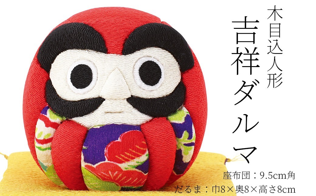 京丹後市の生産者による手作業で作られた木目込み(きめこみ)人形。七転び八起き、倒れても倒れても起き上がる姿から商売繫盛や、金運アップにもご利益があるとも言われている吉祥ダルマ。また「家内安全」「無病息災」などのお守りとして、木目込みならではの上品な仕上がりで、願掛けやお祝いの贈りものとして選ばれています。