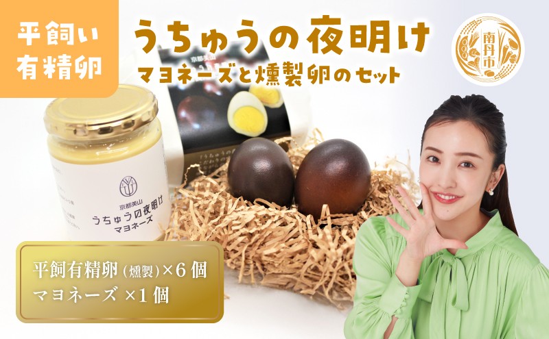 [№5334-0462]うちゅうの夜明け 燻製たまご 6個 マヨネーズセット 卵 燻製 調味料 マヨネーズ 有精卵 米酢使用 京都府 南丹市【※3月15日以降発送】