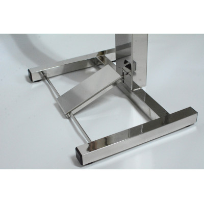 手で押さずに消毒できる、ステンレス製の足踏み式消毒液スタンドです。