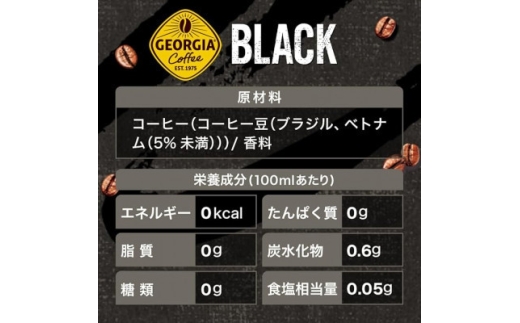 容量 | ■お礼品の内容について 1回~3回 ジョージア ブラック500mlPET×24本 ・国産 ■原材料 コーヒー(コーヒー豆{ブラジル、ベトナム(5%未満)})、香料 |