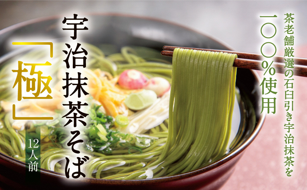 宇治抹茶そば「極」12人前 〈京都 茶そば 蕎麦 そば 宇治抹茶 抹茶 石臼挽き 宇治 温冷 乾物 乾麺〉 n0154改