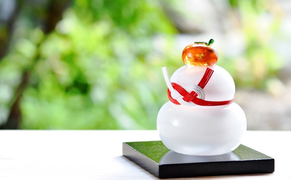 鏡餅 かがみ餅 ガラス ガラス細工 ガラス作家 ガラス工芸 お正月 お祝い おしゃれ インテリア 手のり 手作り 工芸品