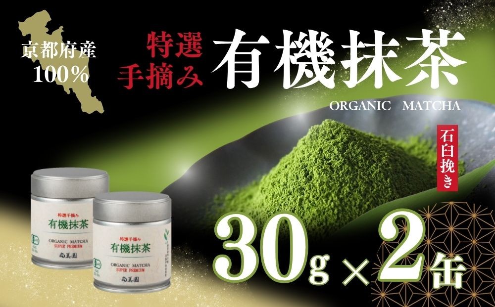 宇治・有機抹茶プレミアム 30g×2缶〈宇治抹茶 抹茶 有機 オーガニック 緑茶 お茶 茶 宇治 石臼挽き 碾茶 茶筒 茶缶〉 n0259改