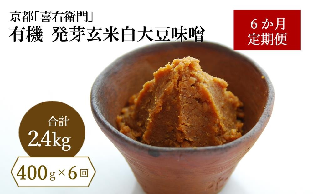 【定期便6か月】有機発芽玄米白大豆味噌400g×6回 京都・喜右衛門 〈味噌 みそ 有機 無添加 オーガニック 天然醸造 手作り 生みそ〉 n0338改×6