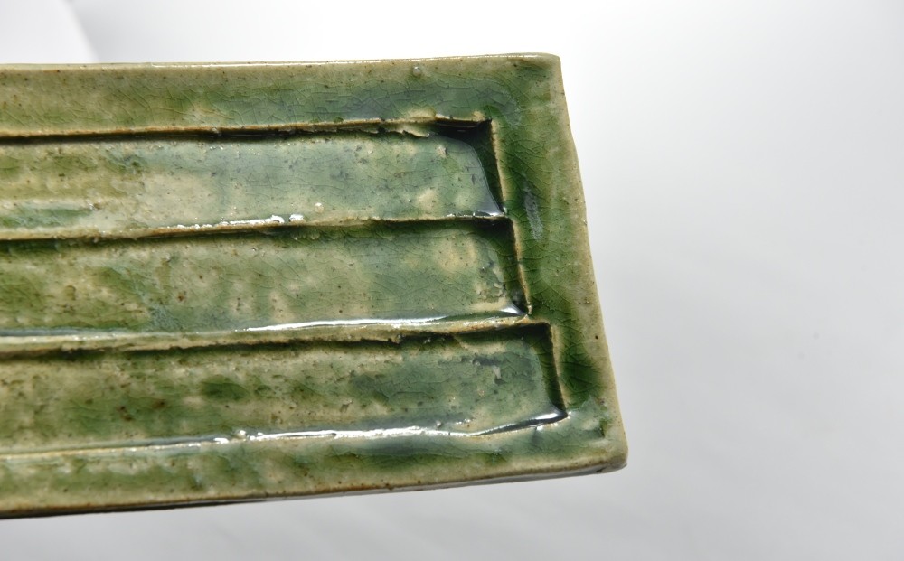 | 容量 | ●京焼「面取織部釉長皿(平)」1枚 大きさ:12cm×32cm 重量:920g ※全て手作りのため、形や釉薬に個体差があります。 |