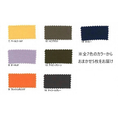 | 容量 | ■内容量・サイズ/製造地 女性・ジュニア向きのMサイズ 幅16cm×9.5cm 5枚セット 製造地:与謝野町 ■原材料 おもて地:ポリエステル100% ちりめん白生地【染料無着色】 内側地:接触冷感生地 ポリエステル58% レーヨン42% ※丹後ポリエステルちりめんの特徴 1. 熱湯や水に濡れても縮みません 2. 洗濯機で丸洗いできます 3. シワにならないのでアイロンがけも不要 ■注意事項/その他 ※内側地がペールゴールド、オーキッド、フレッシュオレンジ、トビブラウン、アイビーグリーン、チャコールグレー、ネイビーの全7色のカラーからおまかせ5枚をお届けします。 ※画像はイメージです。 |