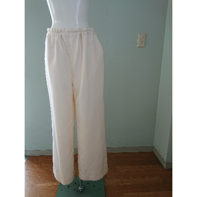 丹後で織りました絹100%の生地を使っております。お肌の敏感な方でも安心してご着用頂けます。一枚仕立てで一年中ご活用して頂けます。ウエストはゴムですが内紐付きで調整可能です。パンツ丈も調整して頂けるように裾も手縫いしております。ジャケットと合わせてお仕事やお出かけに、普段のくつろぎ着としても幅広くお使い頂けます。