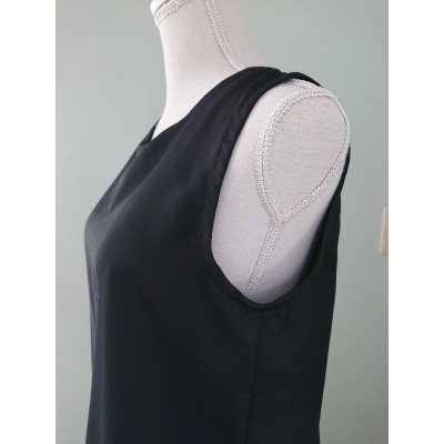 丹後で織り上げた絹100%のノースリーブブラウスは、シルクの肌触りの良さとシルクレースの美しさが融合した黒の一着が特徴です。フィット感が優れており、どんなシーンにも対応可能。ジャケットやパンツ、スカートともコーディネートしやすく、ビジネスからカジュアルまで幅広いスタイルにマッチします。インナーブラウスとしても活躍するデザインです。織の残糸を使い特注したレースを使用しております。