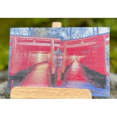 赤く連なる千本鳥居と、静かに続く参道の風景が印象的に描かれ、参拝の記録を美しく彩ります。