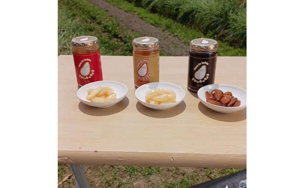 | 容量 | 内容量:らっきょう約100g×3 (プレミアム米酢、米酢、黒糖/瓶入り) 原産地:堺市内 |