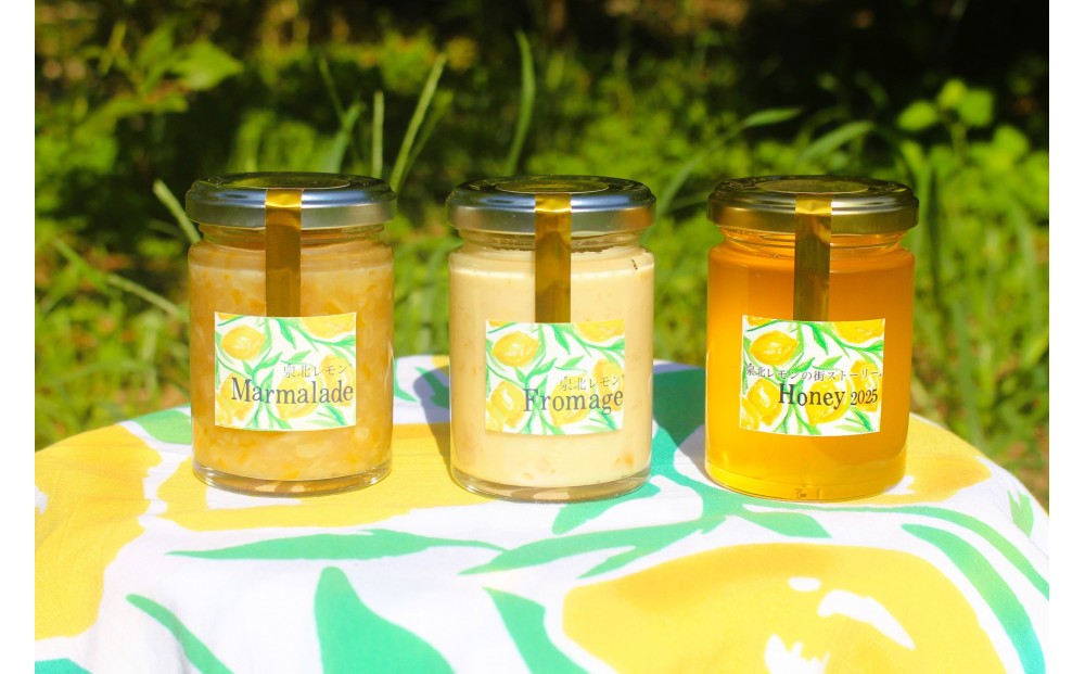 泉北レモンマーマレード・フロマージュと泉北レモンの街ストーリーHoneyを詰め込んだ、心満たされる3本セットです。