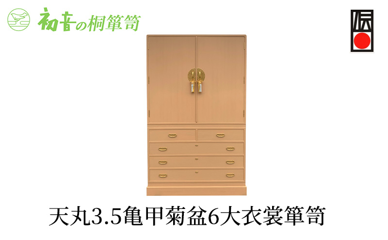 【天丸3,5亀甲菊盆6大衣裳箪笥】伝統的工芸品大阪泉州桐たんす着物衣類収納の最高峰【初音の家具】 [№5385-0030]