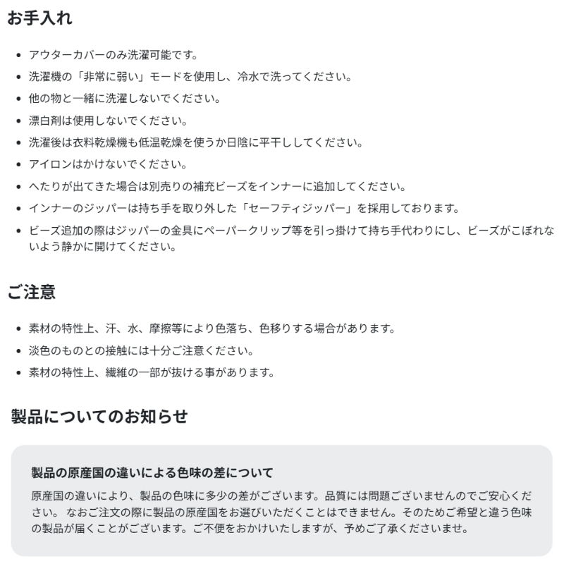※新品のYogiboは、新しいビーズ特有の科学的なにおいがすることがありますが、人体に害のあるもの ではございません。通常、数日~1ヶ月ほどでにおいはなくなりますが、においが 気になる場合は風通しの良い場所にしばらく置いてください。