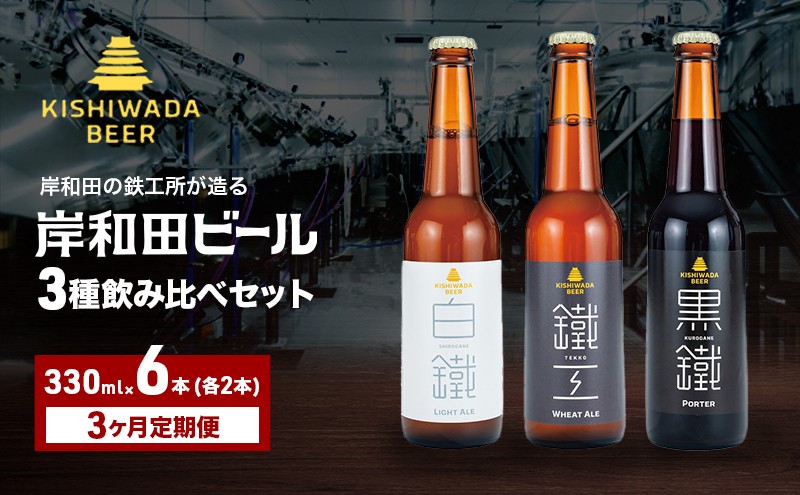 ビール【毎月定期便】岸和田ビール バラエティー6本 全3回(鐵工・黒鐵・白鐵各種2本ずつ) [№5385-0435]