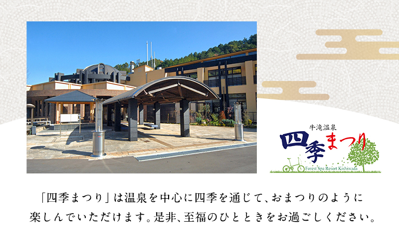 ※寄附お申し込み後、『牛滝温泉 四季まつり』より宿泊券を送付いたします。