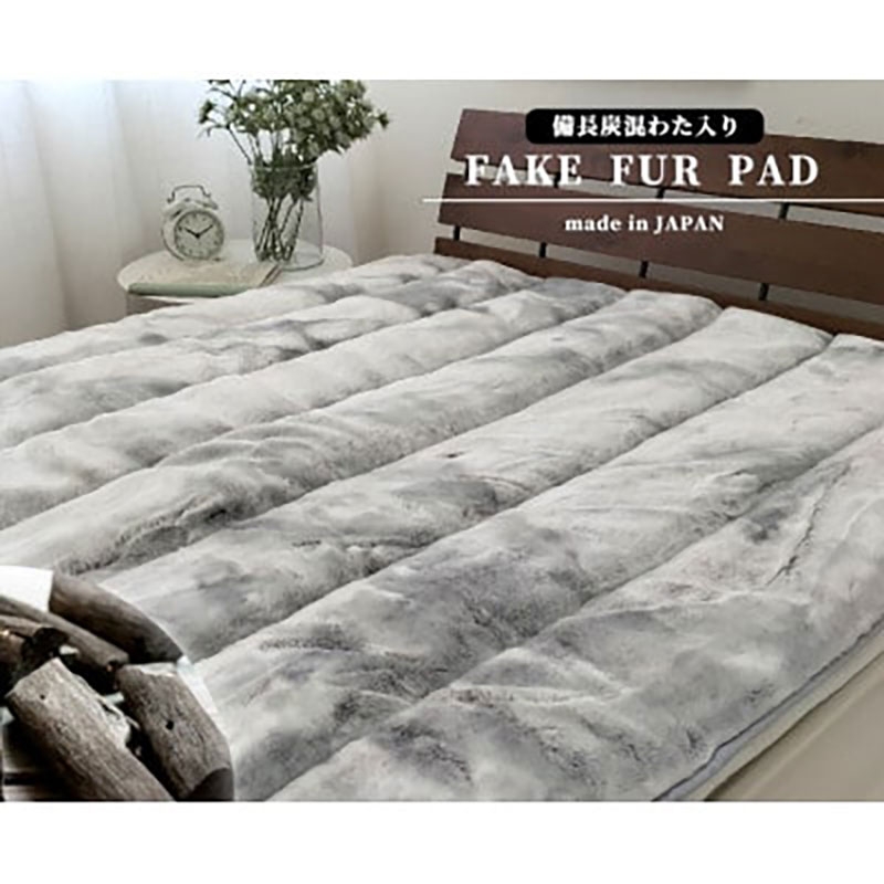 <シングル>備長炭混わた入り フェイクファー敷パッド<グレー> BFP-10S-GY [№5385-0749]