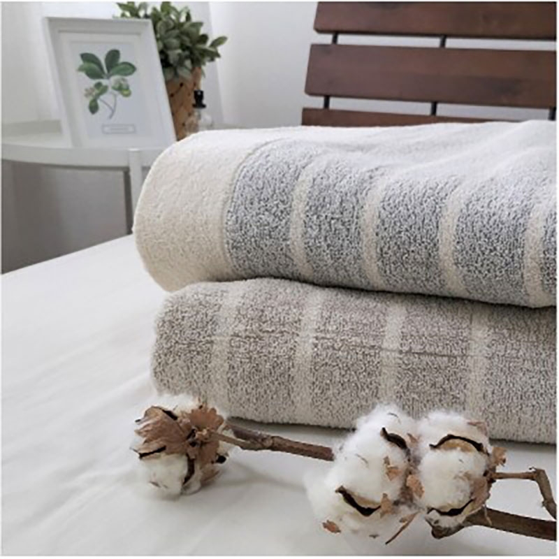 化学薬品の使用を抑えた有機精錬方法により、環境に配慮し人にもやさしいタオルケットです。
