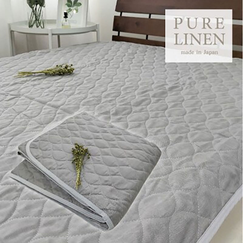 <ダブル>艶やかリネン100%敷パッド(140×205cm)グレー LIN-3W-GY [№5385-0834]