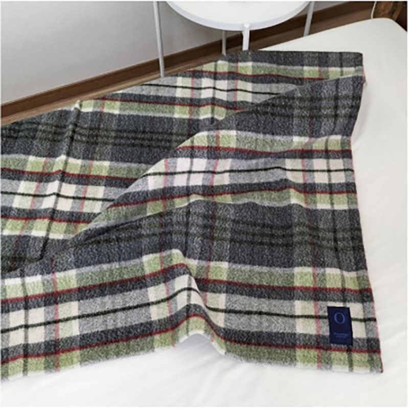 ウール100%とはひと味違う柔らかさとふっくら感のあるブランケットです。