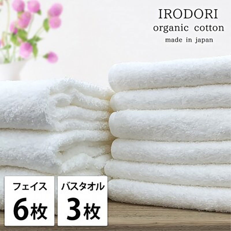 <フェイスタオル6枚・バスタオル3枚>オーガニックコットンタオルセット 彩りWH [№5385-1081]
