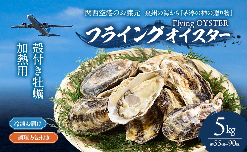 冷凍お届け 殻付き牡蠣 5kg (約55個~90個)加熱用 調理方法付き フライングオイスター牡蠣 海の幸 牡蠣(魚介)/春木牡蠣養殖共同事業 岸和田市 [№5385-1152]