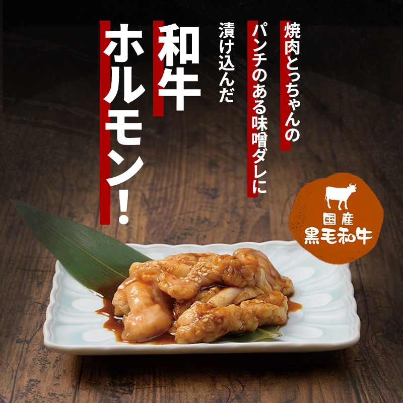 焼肉とっちゃんのパンチのある味噌ダレに漬け込んだ和牛ホルモン。ご家庭やアウトドアでのBBQがもっと美味しくなる、焼肉とっちゃんの秘伝の味噌ダレ、ホルモンシリーズ。