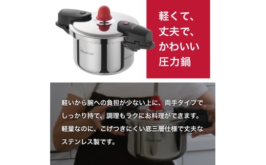 軽くて扱いやすい圧力鍋です。マチカネ君のイラストもとってもかわいくて、気にりました。おススメです!!