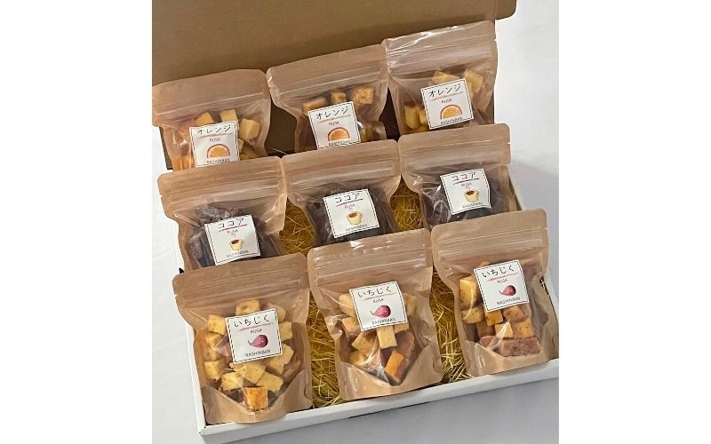 定番の3種(オレンジ・いちじく・ココア)のプレミアムラスクのセットです。