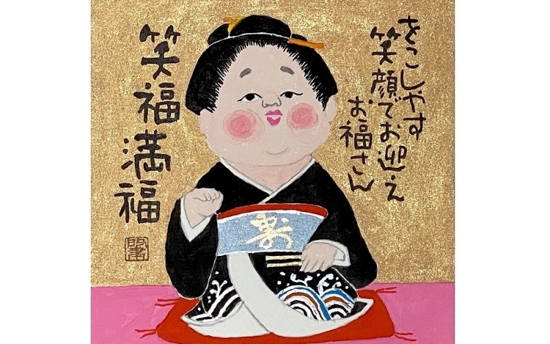 岡本肇 絵画『お福さん‐笑福満福』縁起物シリーズ