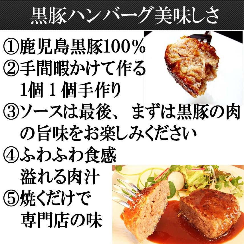 口の中でとろける脂の上品な甘さと、きめ細やかな肉質のハーモニー 【25-32】鹿児島黒豚100%手作りハンバーグ 110g×4個(冷凍)