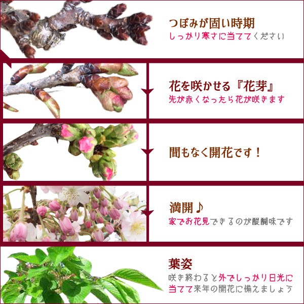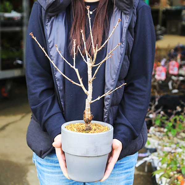 落葉樹。4月頃に開花する可愛い桜のミニ盆栽です。 目安4月頃開花、4月下旬-10月上旬頃は葉姿、10月頃-3月は 落葉状態でのお届けになります。 開花状況の指定はできません。 その年の気候によって、開花時期は前後します。 季節ごとの変化をお楽しみください。 鉢植えについて、和風(茶)のものと洋風(白)のもの、お好みがあればお知らせください。 ご希望がない場合は事業者へのおまかせとなります。 サイズ:樹高(約15cm)鉢径(約12cm) お手入れ方法:詳細はお届けする説明書をご覧ください。 ・水遣り…用土の表面が乾いたらあげる。目安は春・秋は1日1-2回、夏1日2回、冬2,3日に1回。 ・置き場所…基本的に室外。日当たり・風通しの良い所。夏は半日陰が良い。冬は風、霜があたらない陽だまりが良い。 『植物』ですので、写真と異なる場合があります。また、長期不在等で受け取りが遅れると、傷んでしまう場合があります。長期の不在予定がある方は、事前にお知らせください。 配送方法:通常 生産者:有限会社 養庄園(大阪府池田市木部町347-1) ※お届け後、詳しい手入れ方法を知りたい方は、生産者までお問い合わせ下さい。