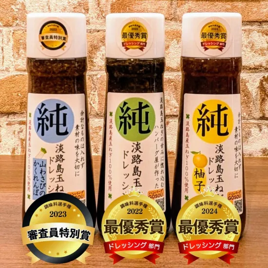 淡路島玉ねぎ100%!体に優しい無添加ドレッシング 【82-01】調味料選手権受賞ドレッシング3本セット