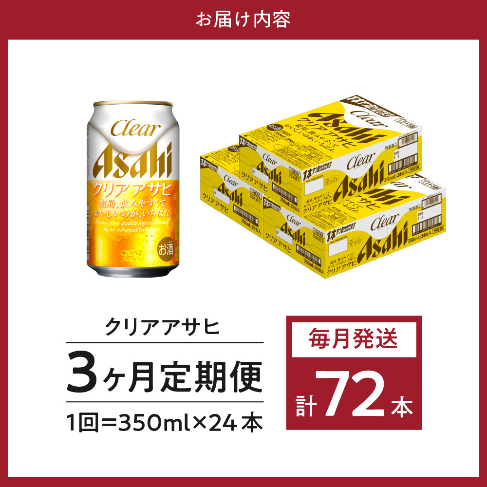 クリアな飲み心地!すっきりとした味わいと麦のうまみを実現 【3ヶ月定期便】クリアアサヒ 350ml 24本入り 1ケース【アサヒビール発祥の地】【大阪府吹田市】