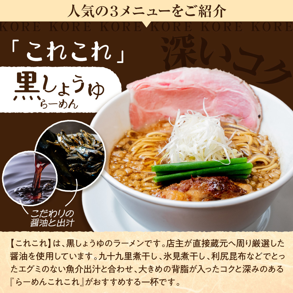 行列のできる有名店【らーめんこれこれ】の味をご自宅で 行列のできる有名店「らーめんこれこれ」の選べるラーメン3食セット (これこれ/それそれ/どれどれ/食べ比べ)【大阪府吹田市】